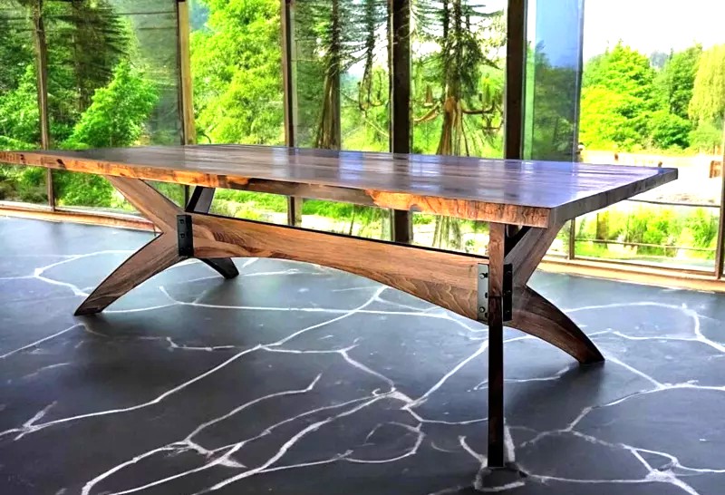 Himmelfjäll är ett rektangulärt matbord som kombinerar kraftfulla linjer med varm, skandinavisk formgivning. Det är skapat för dig som vill ha ett unikt och vackert format underrede med en lite tuffare och rustikare känsla, då underredet är sammansatt med kraftiga metallbeslag och bultar.